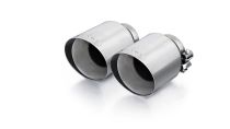 Stainless steel tail pipe set L/R with each 2 tail pipes Ø 102 mm angled, straight cut, chromed, with adjustable spherical clamp connection